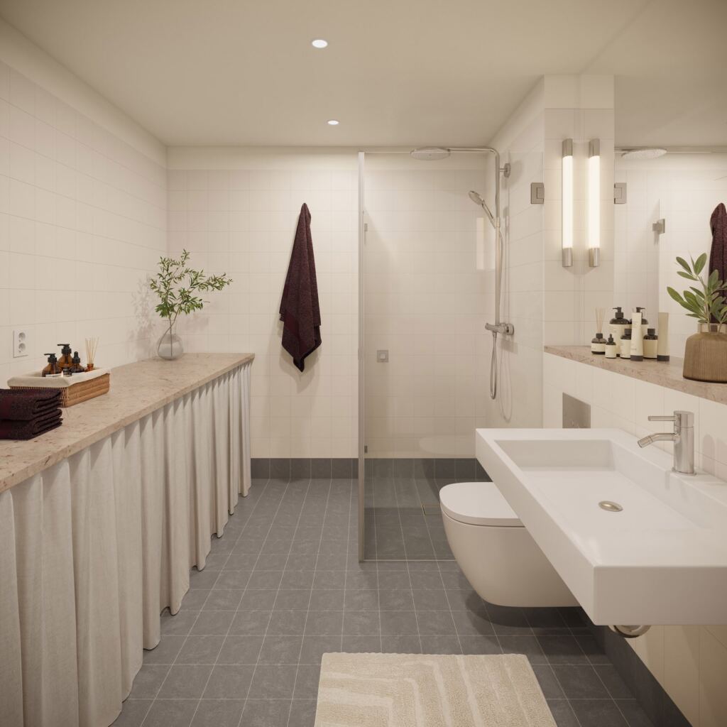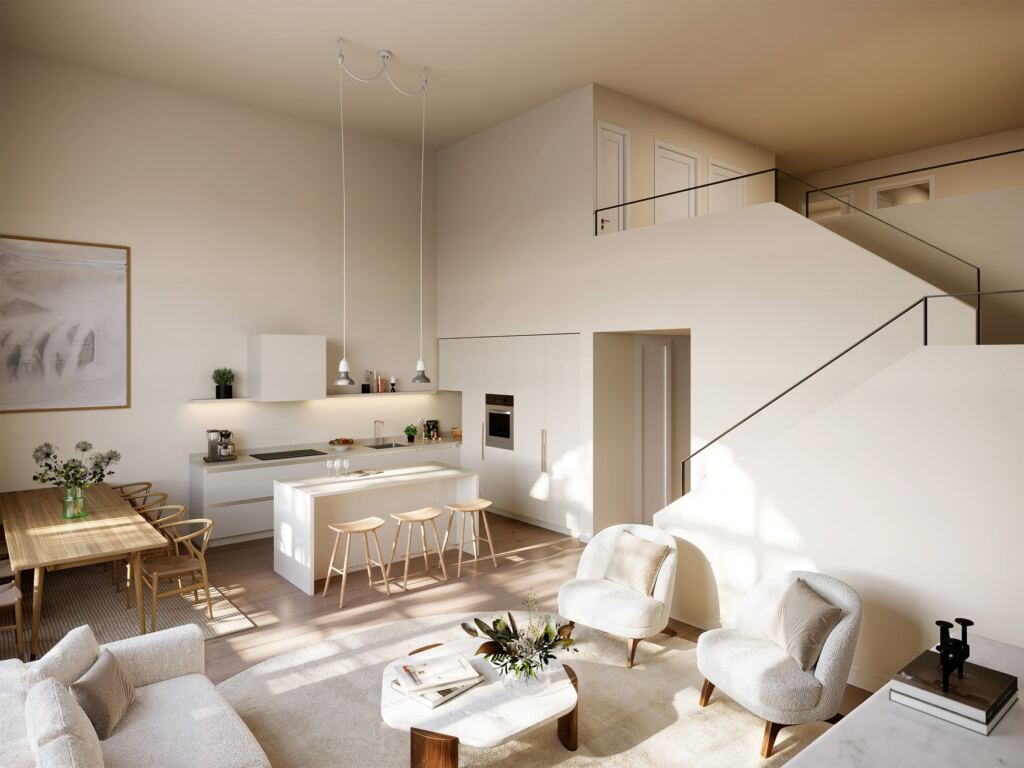 Bostäderna planeras utifrån husets volym och rumslighet. I flera av etagerna planeras takhöjd på upp till cirka fem meter, vilket ger ljus, rymd och ett hem som känns utöver det vanliga.