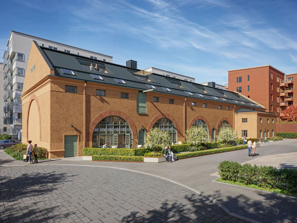Proportionerna är tydliga, uttrycket är robust och de stora välvda originalfönstren bevaras som en naturlig del av upplevelsen. Omvandlingen sker med respekt för det befintliga – där originalet får synas och det nya tillförs med precision.
